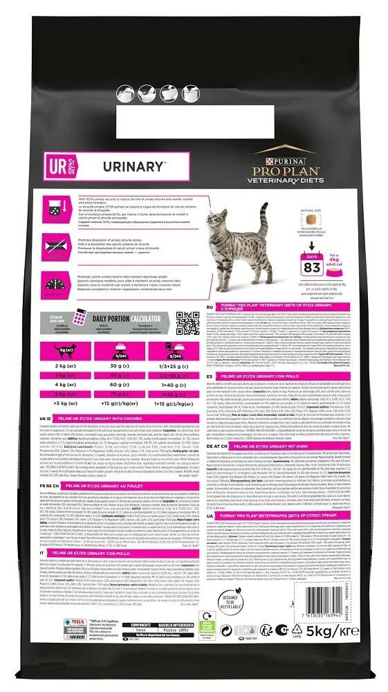 Сухой корм для кошек Pro Plan Veterinary Diets UR St/Ox Urinary, при болезни нижних отделов мочевыводящих путей, с курицей 5 кг