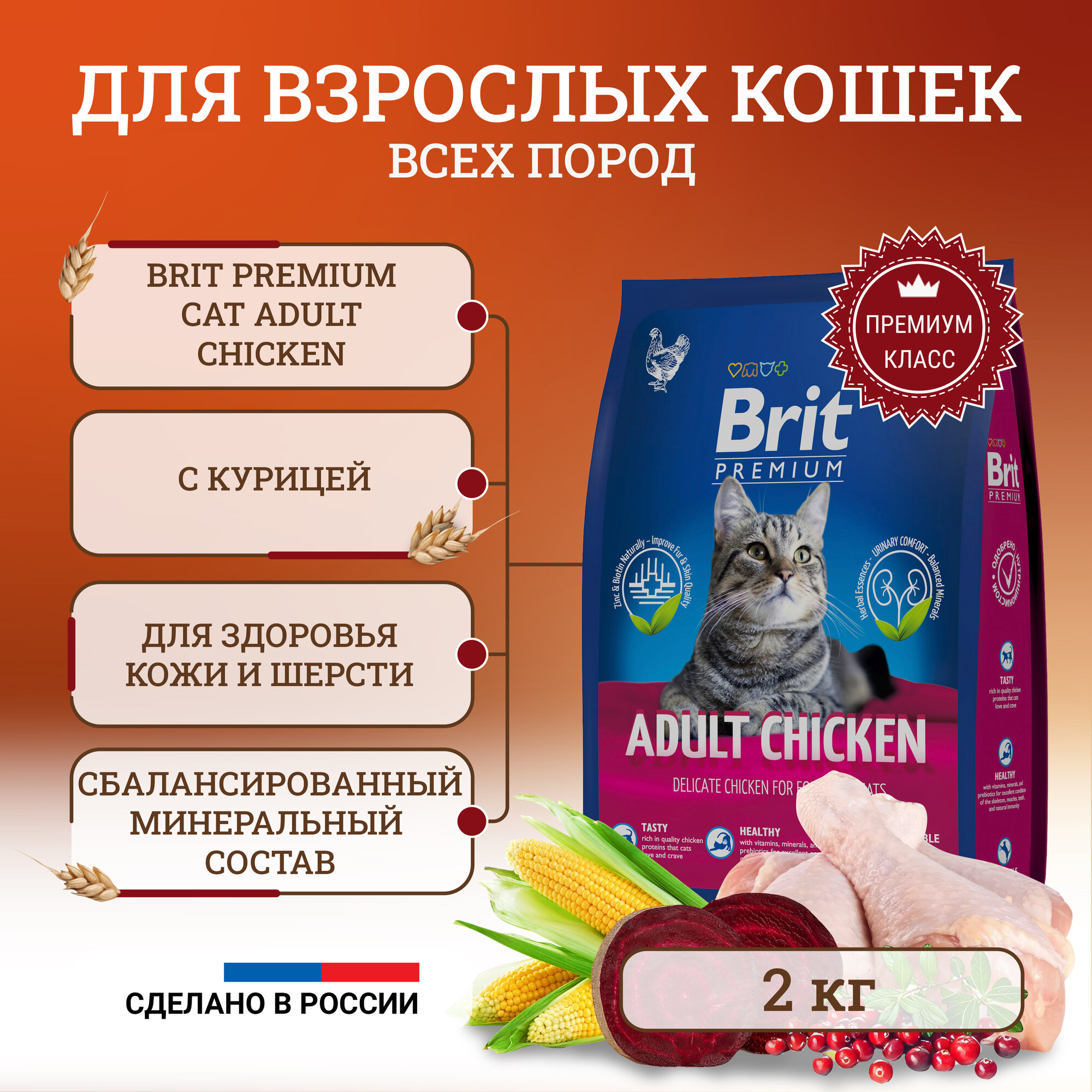Сухой корм для кошек Брит Premium Cat Adult Chicken для кошек 2кг курица россия