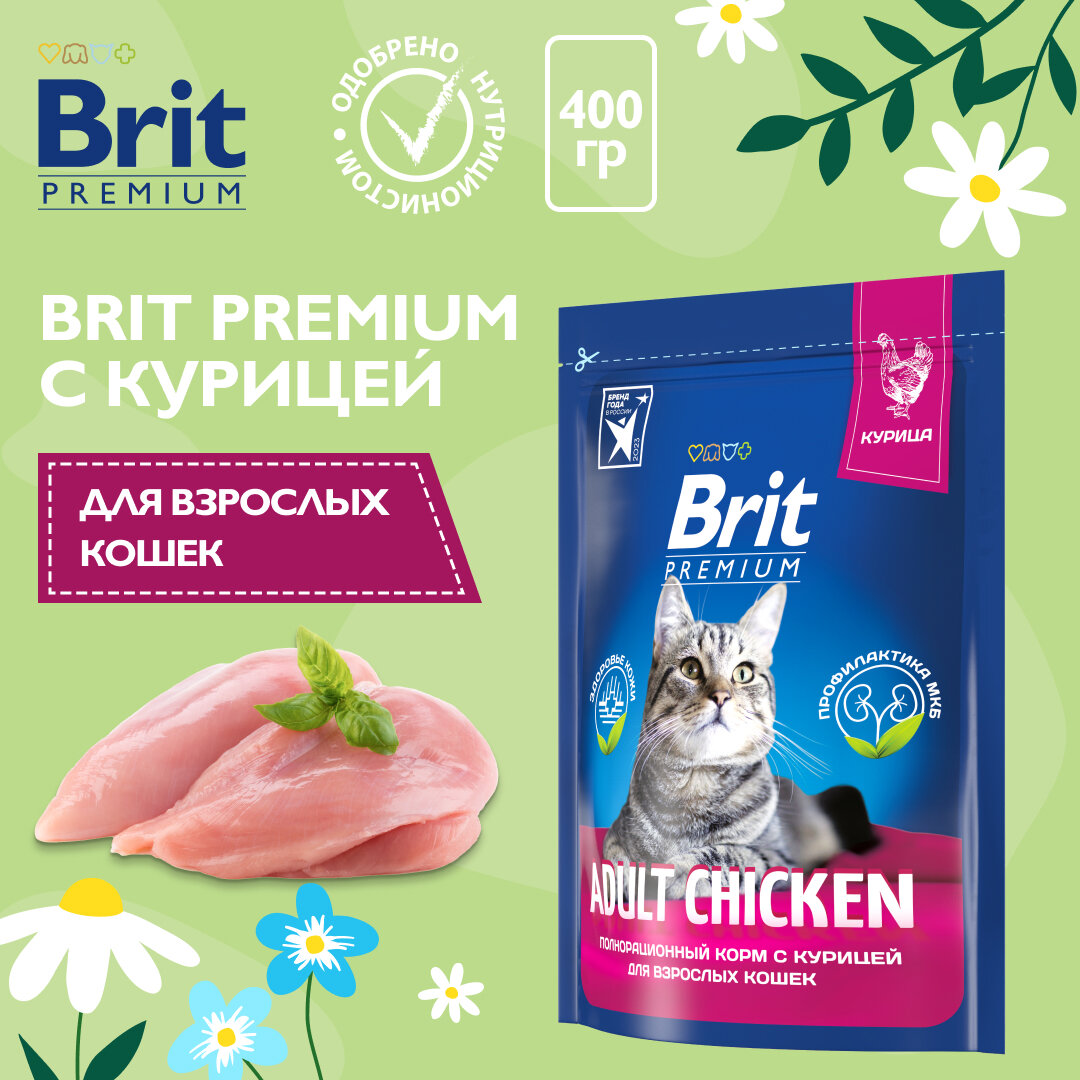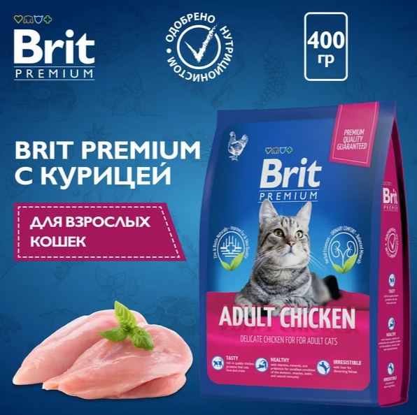 Купить BRIT PREMIUM CAT ADULT CHICKEN для взрослых кошек с курицей (0,4 кг)