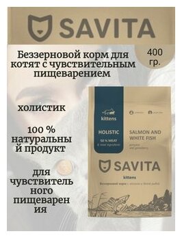 SAVITA Беззерновой корм для котят с лососем и белой рыбой 400г 0.4 кг