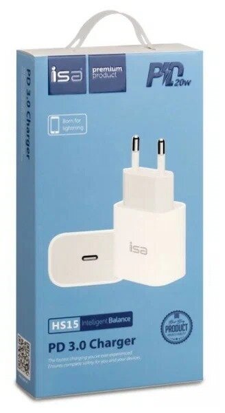 Купить Сетевое зарядное устройство ISA HS15 c выходом USB-C, PD20W, Белый