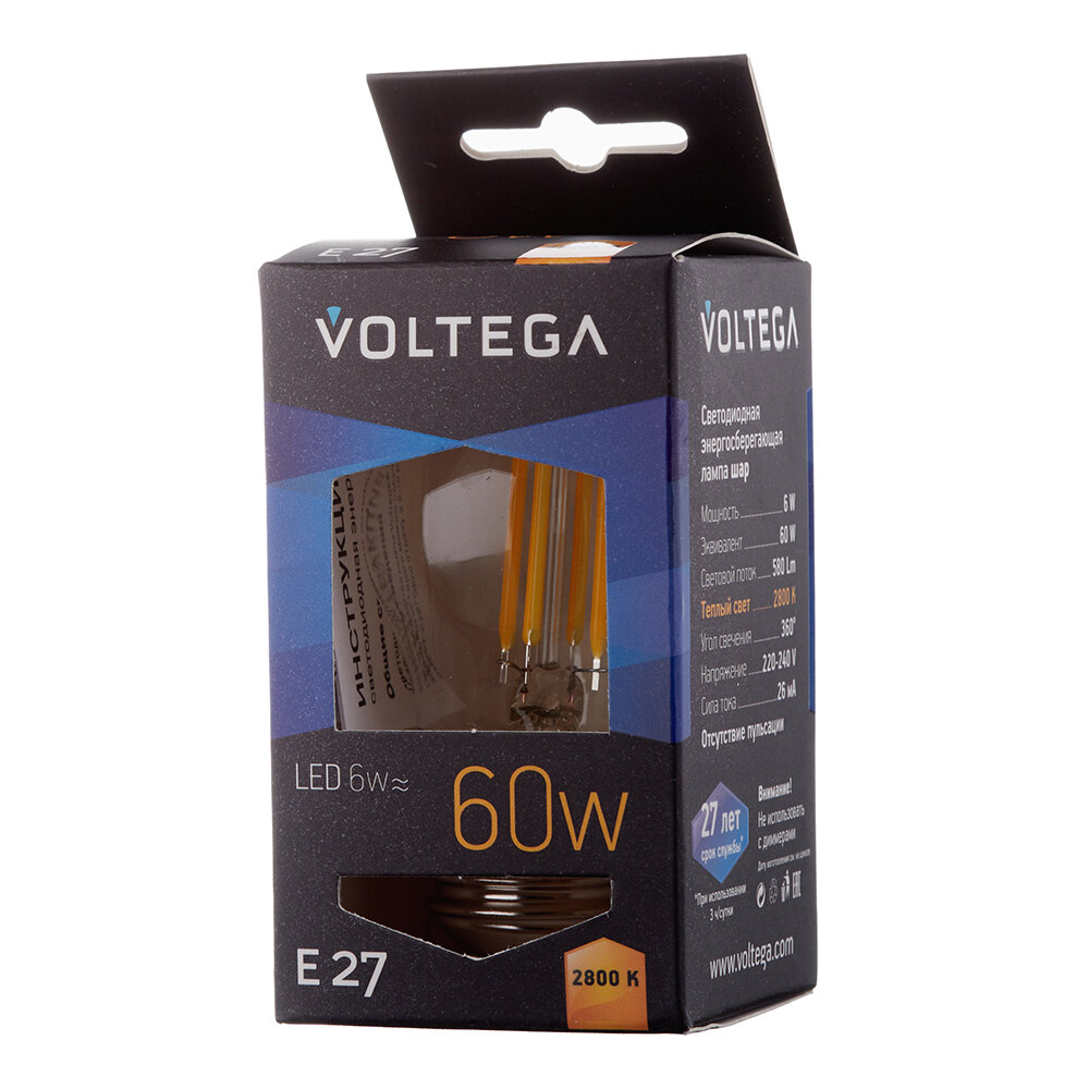 VOLTEGA Лампа Светодиодная Шар Е27 2800К 6W