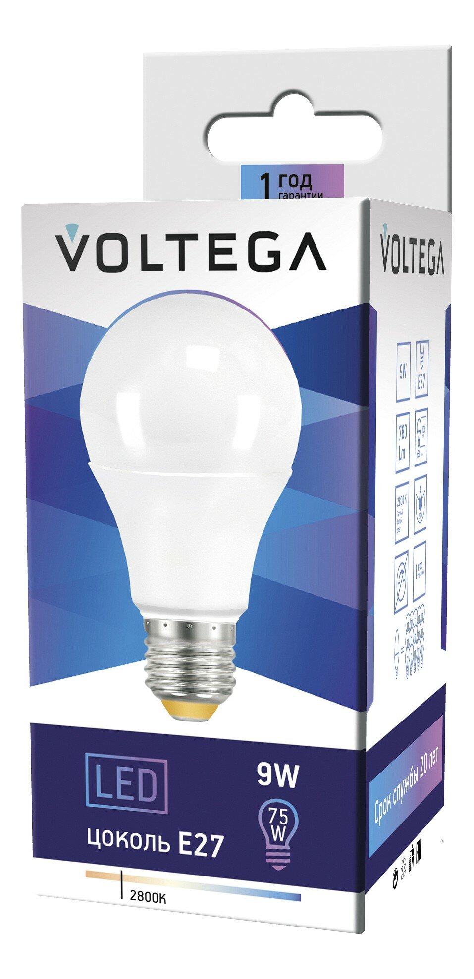 VOLTEGA Светодиодная лампа VOLTEGA ЛОН E27 2800К 9W