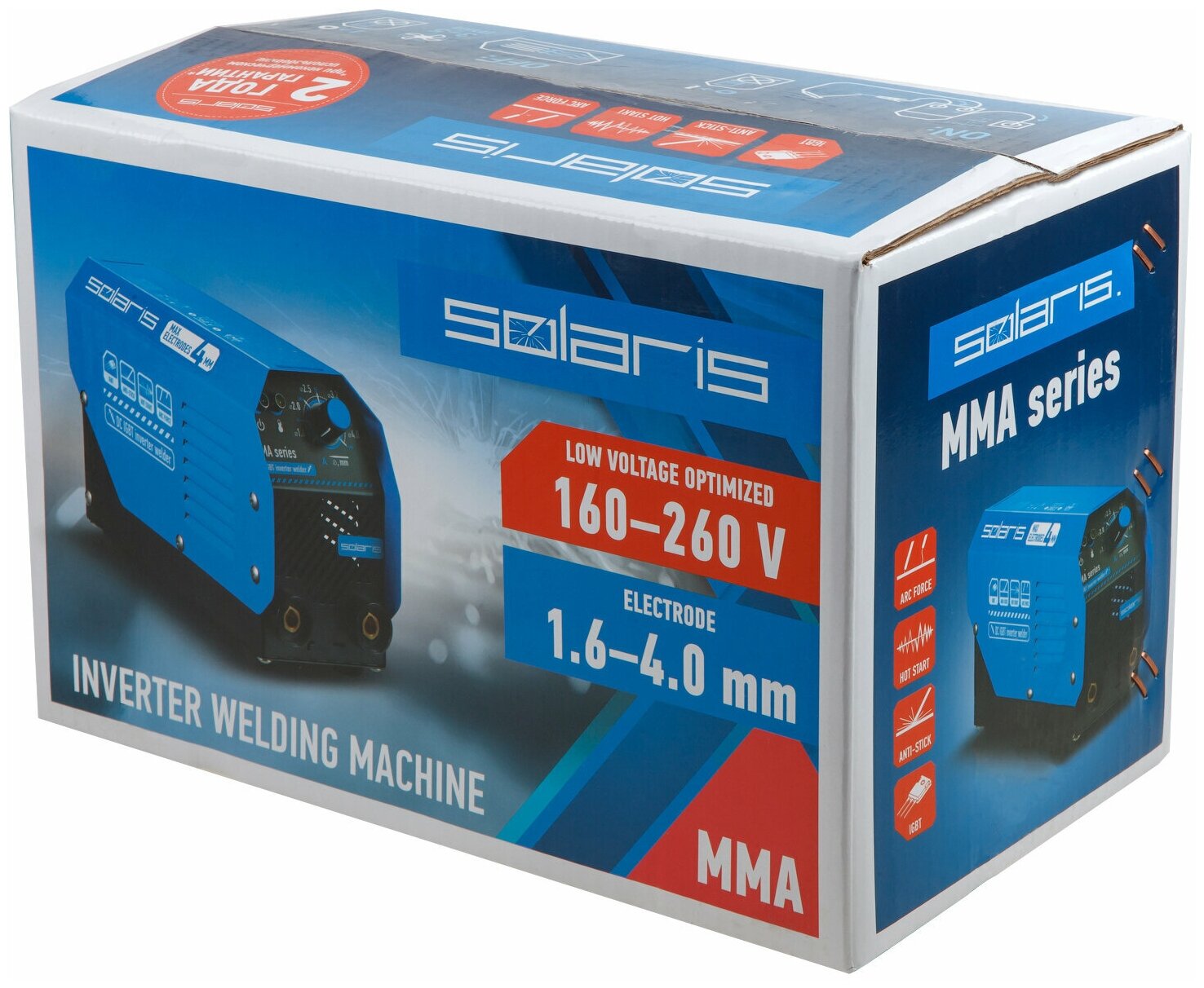 Инвертор сварочный SOLARIS MMA-200D (230В; 20-140 А; 70В; электроды диам. 1.6-4.0 мм; вес 3.1 кг) (MMA-200D) интересное: