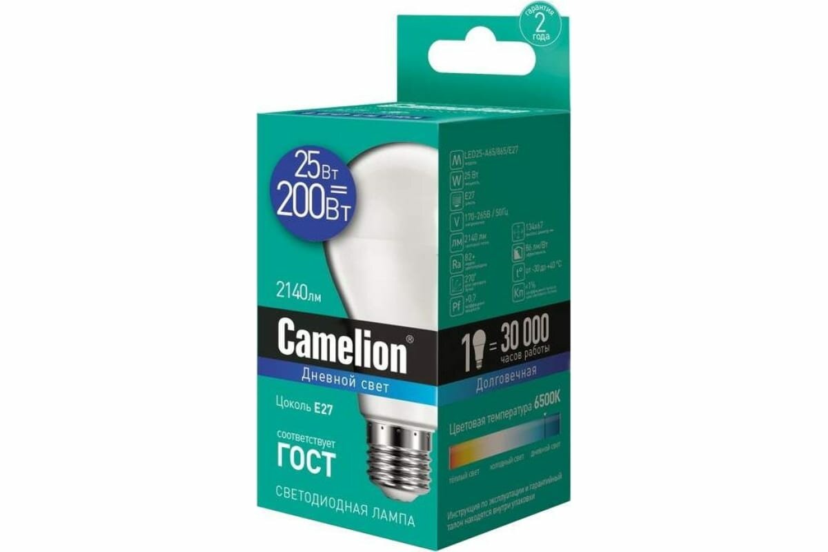 Эл.лампа светодиодная 25Вт LED25-A65/865/E27 (25W= 200 Вт 2140 Lm ) Camelion