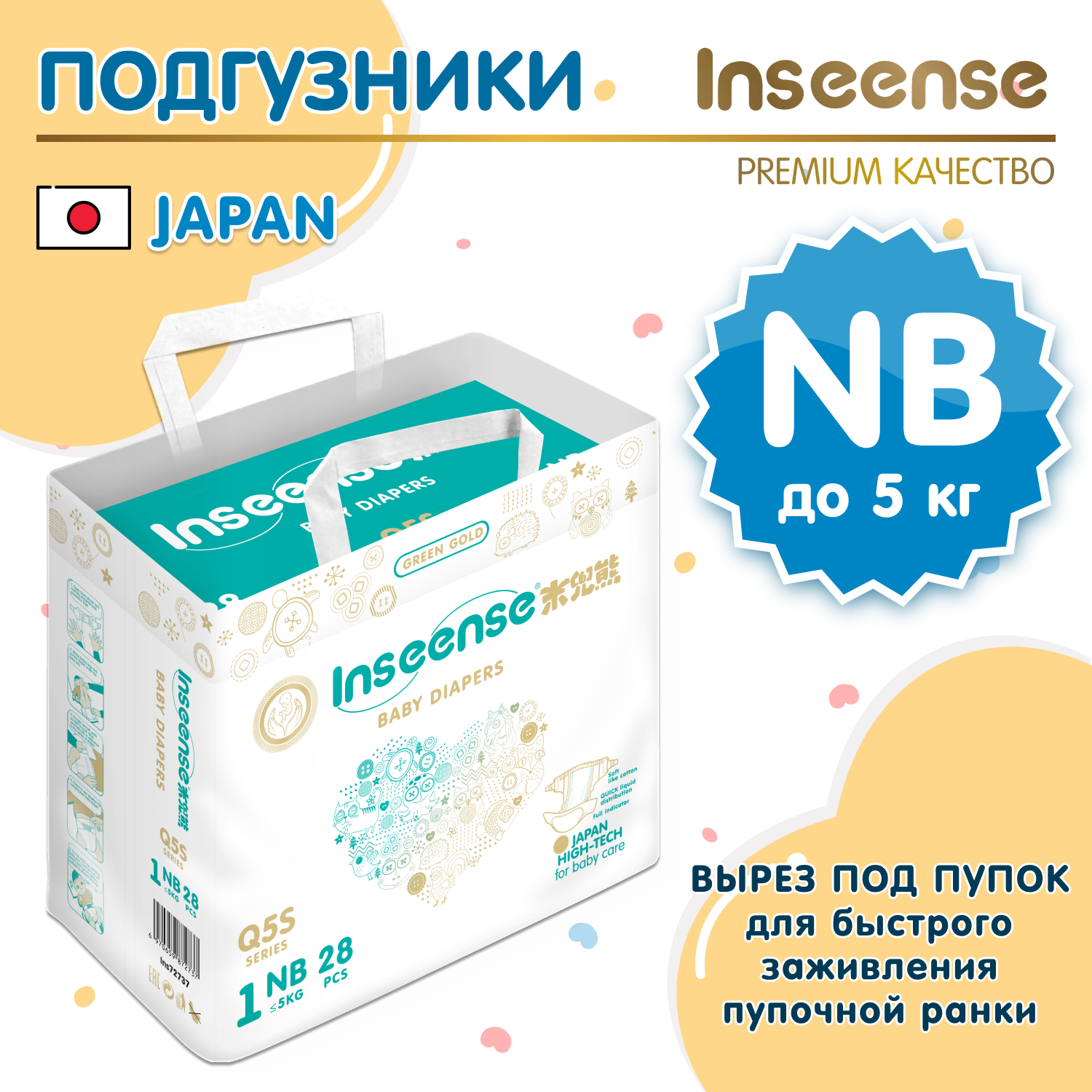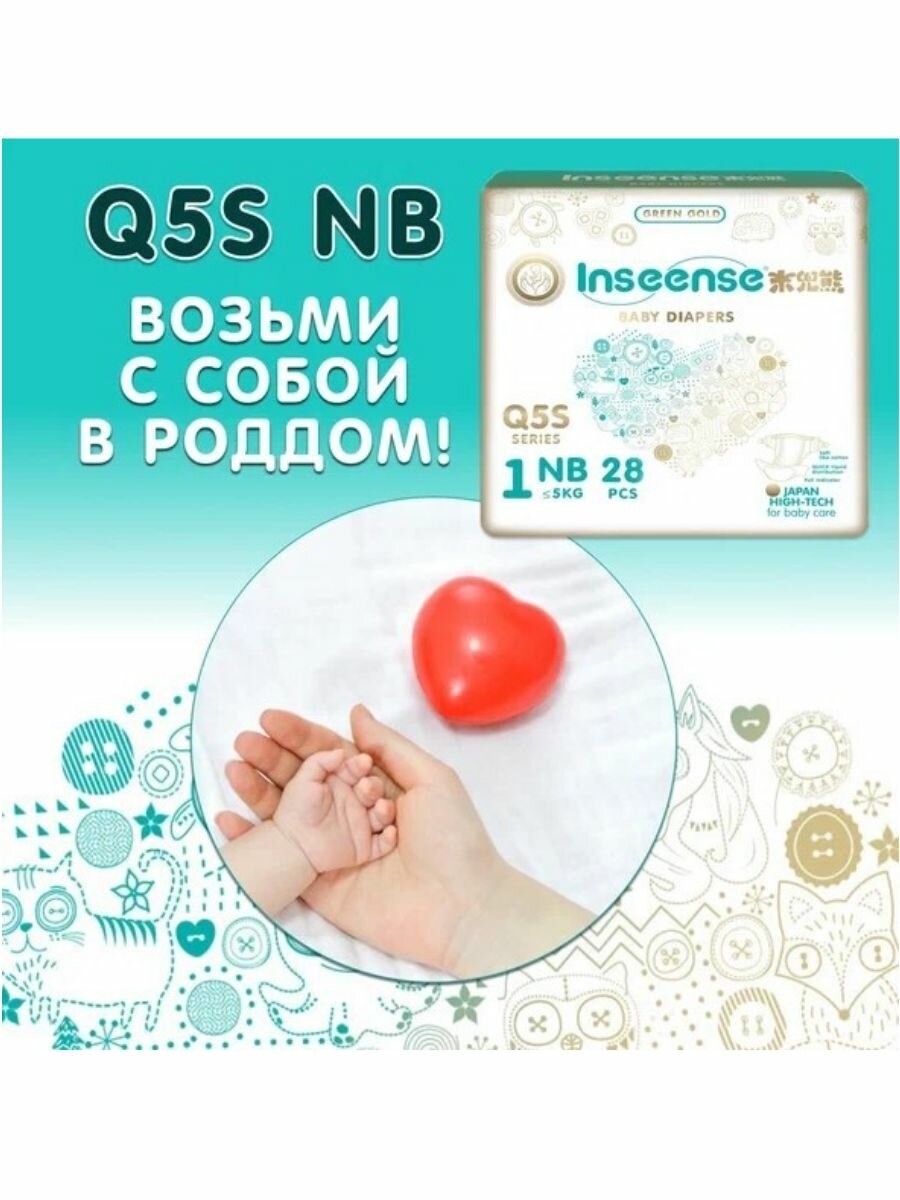 Подгузники Inseense NB с вырезом для пупка Q5S 0-5 кг 28 шт