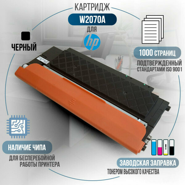 Картридж GalaPrint W2070A 117A с чипом для HP Color Laser 150nw/150a/178nw/179fnw лазерный, совместимый, цвет чёрный
