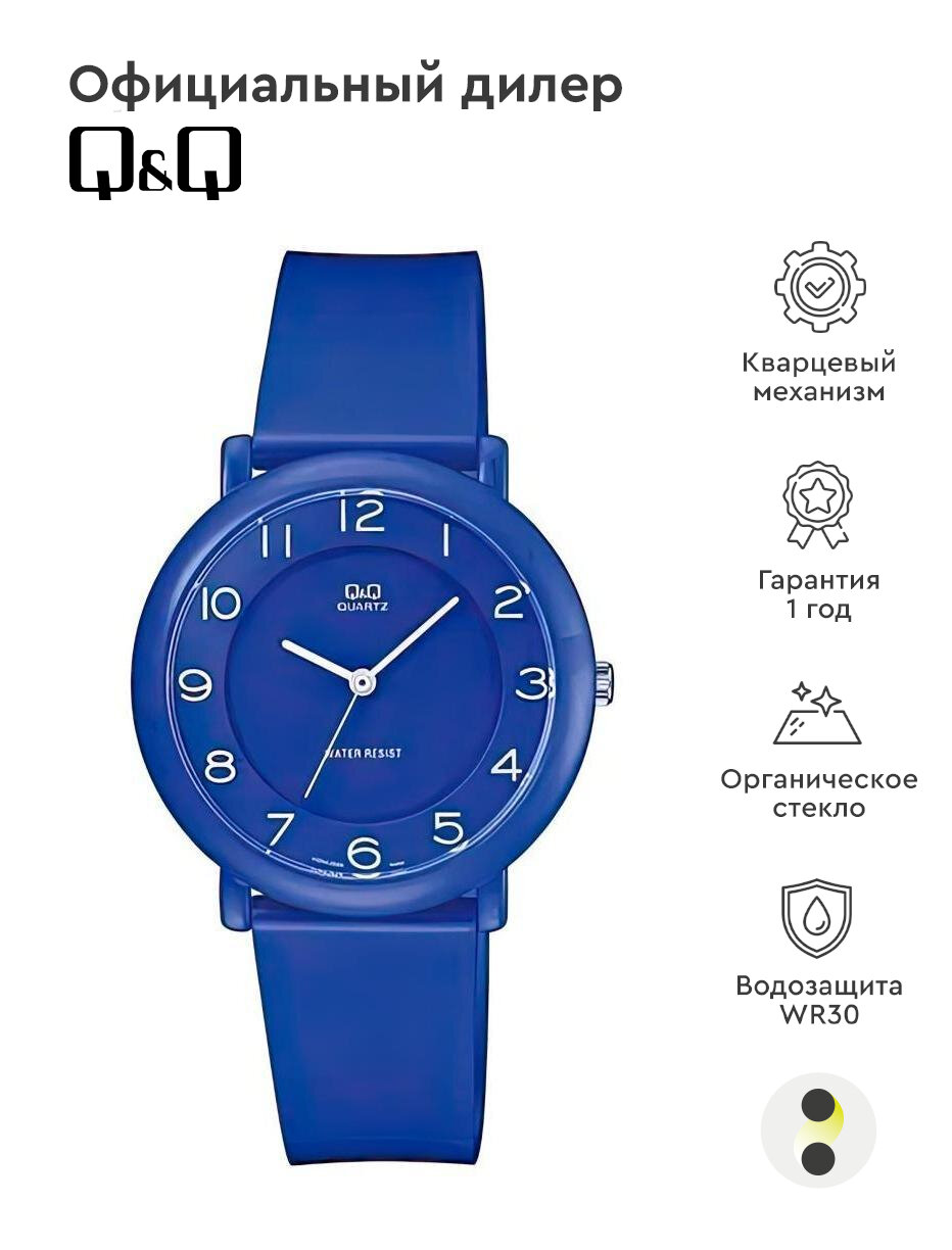 Q&Q Часы наручные Q&Q VQ94-020 ремень синий, пластик, 30м №9942