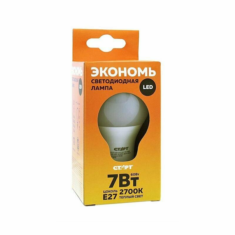 Купить Лампа Старт "Eco", светодиодная, 7W, E27, 2700К, теплая белая, шар