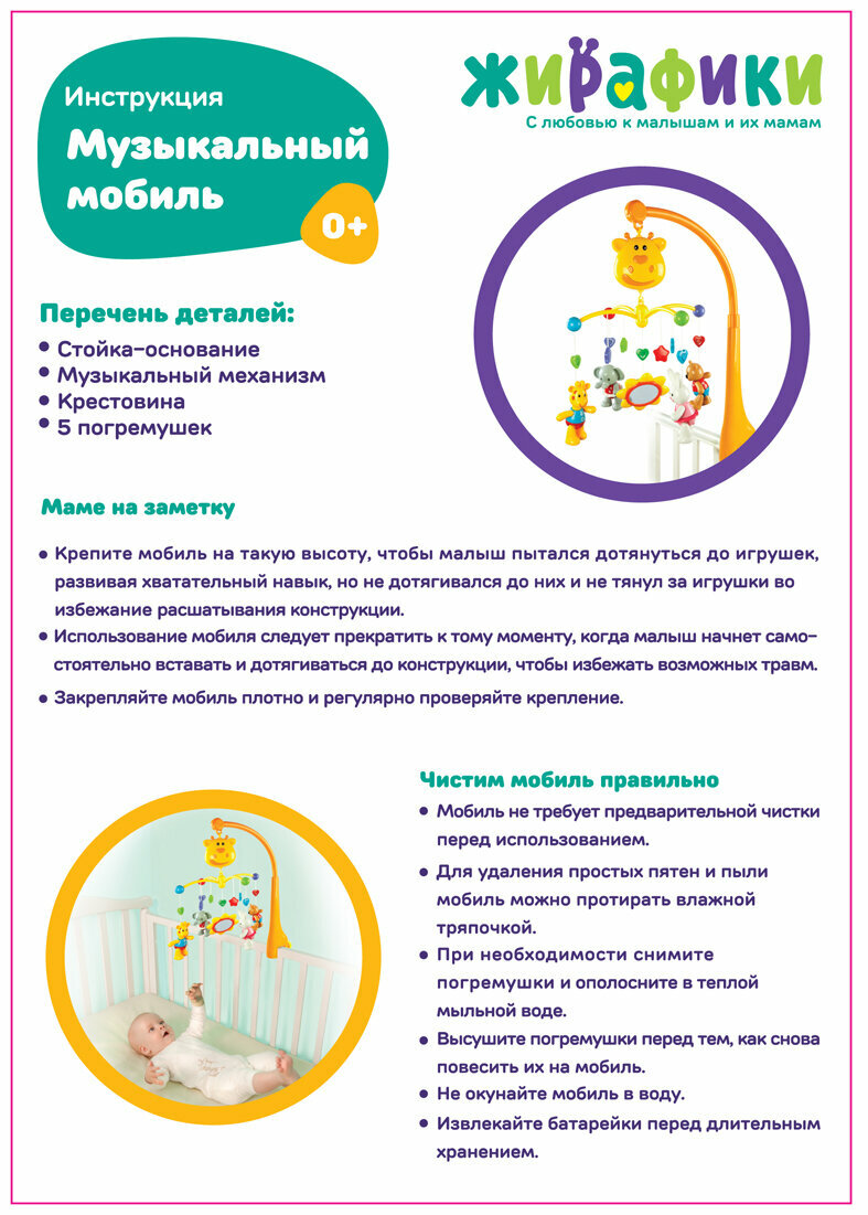 Ниже Вы можете прочитать отзывы на Музыкальный мобиль в кроватку для детей Жирафики, ознакомится с подробными характеристиками, посмотреть интересные обзоры и фотографии на Музыкальный мобиль в кроватку для детей Жирафики.