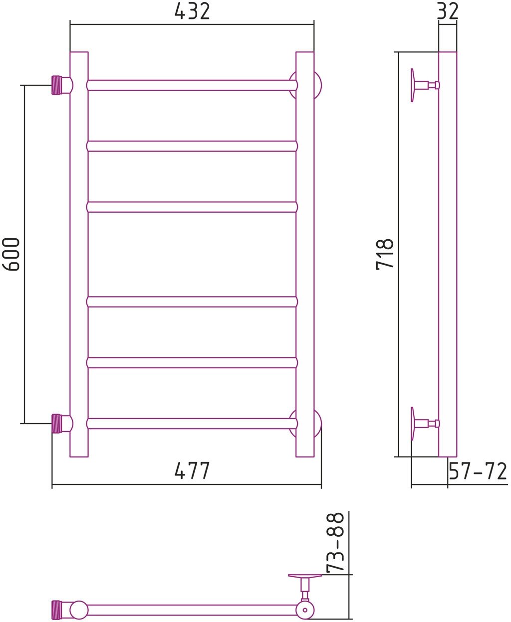 Полотенцесушитель водяной Сунержа стилье "Версия-Б" 600х400 (3+3) П 18 (Без покрытия) 00610-6040