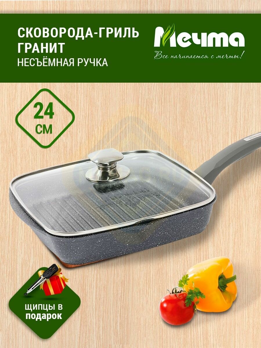 СохранитьМечта Сковорода-гриль квадрат 24*24 см АП Гранит с несъемной ручкой и стеклянной крышкой С64701 интересное: