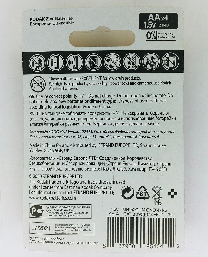 | Отзыв: | Батарейка Kodak проработала в настенных часах потребляющих мизер энергии месяц. Измерял напряжение при установке -было 1,6 вольт. за месяц упало до 0,9 вольт. На батарейках нет и намёка на дату изготовления. Установил ERGOLUX. Результат ещё хуже- две недели.