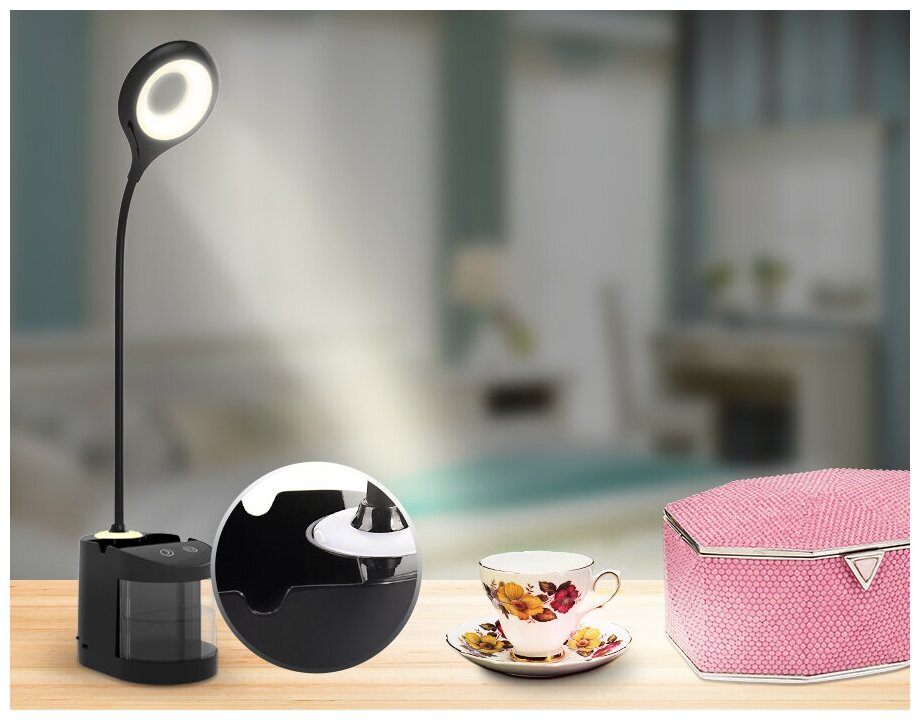 Настольная светодиодная лампа со встроенной аккумулятороной батареей и органайзером Ambrella DE562 BK черный LED 4200K 4W