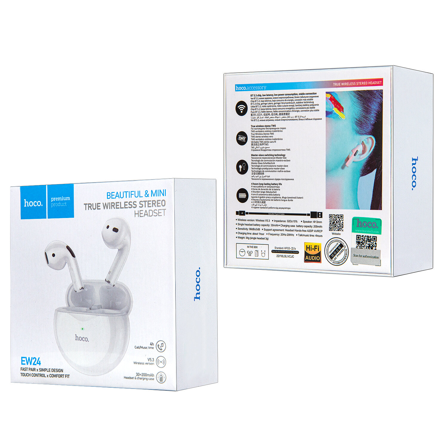 Гарнитура Bluetooth наушники EW24 True Wireless Stereo Headset HOCO белая