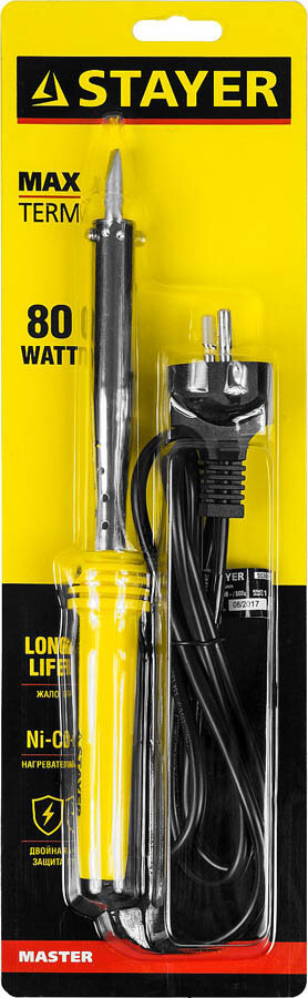 Паяльник Stayer ""master"" MAXTerm с пластмассовой рукояткой и долговечным жалом, 80 Вт, клин .