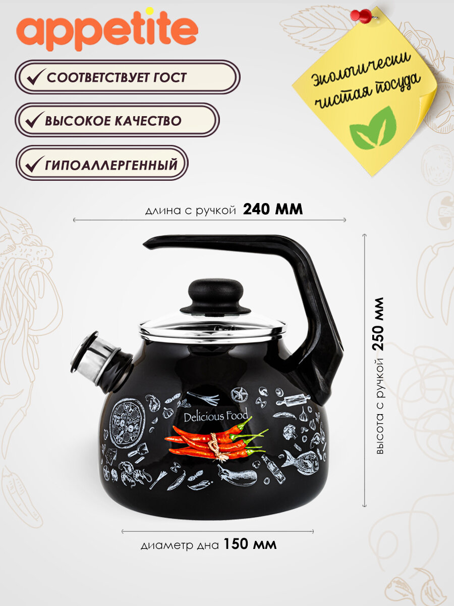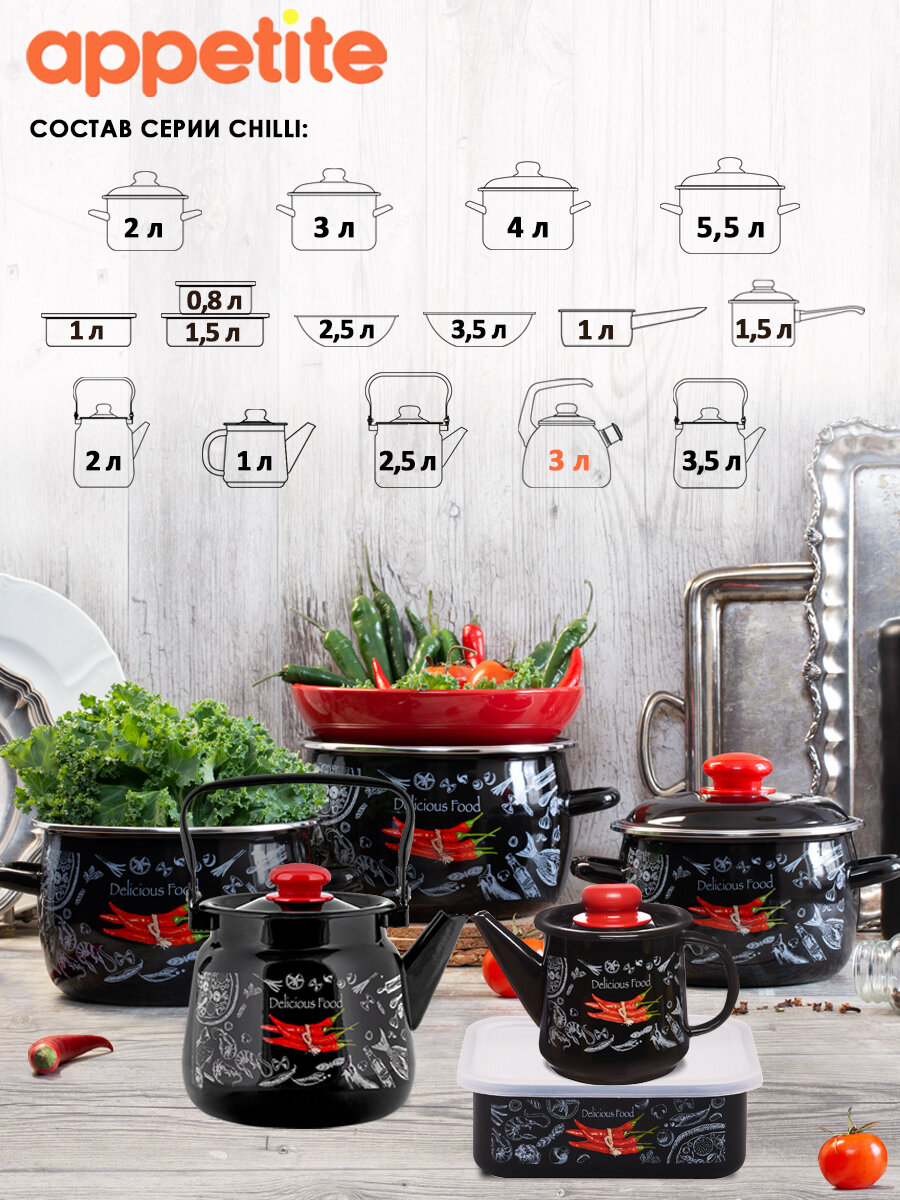 Чайник эмалированный Chilli 3,0 л со свистком ТМ Appetite интересное: