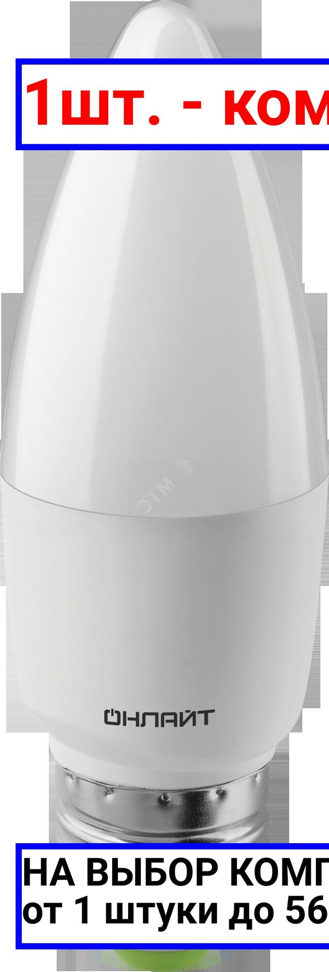 (5 шт.) Светодиодная лампочка онлайт свеча C37 E27 10W(750lm)4000K4K118х38OLL-C37-10-230-4K-E27 61960 Нейтральный белый. Цоколь E27