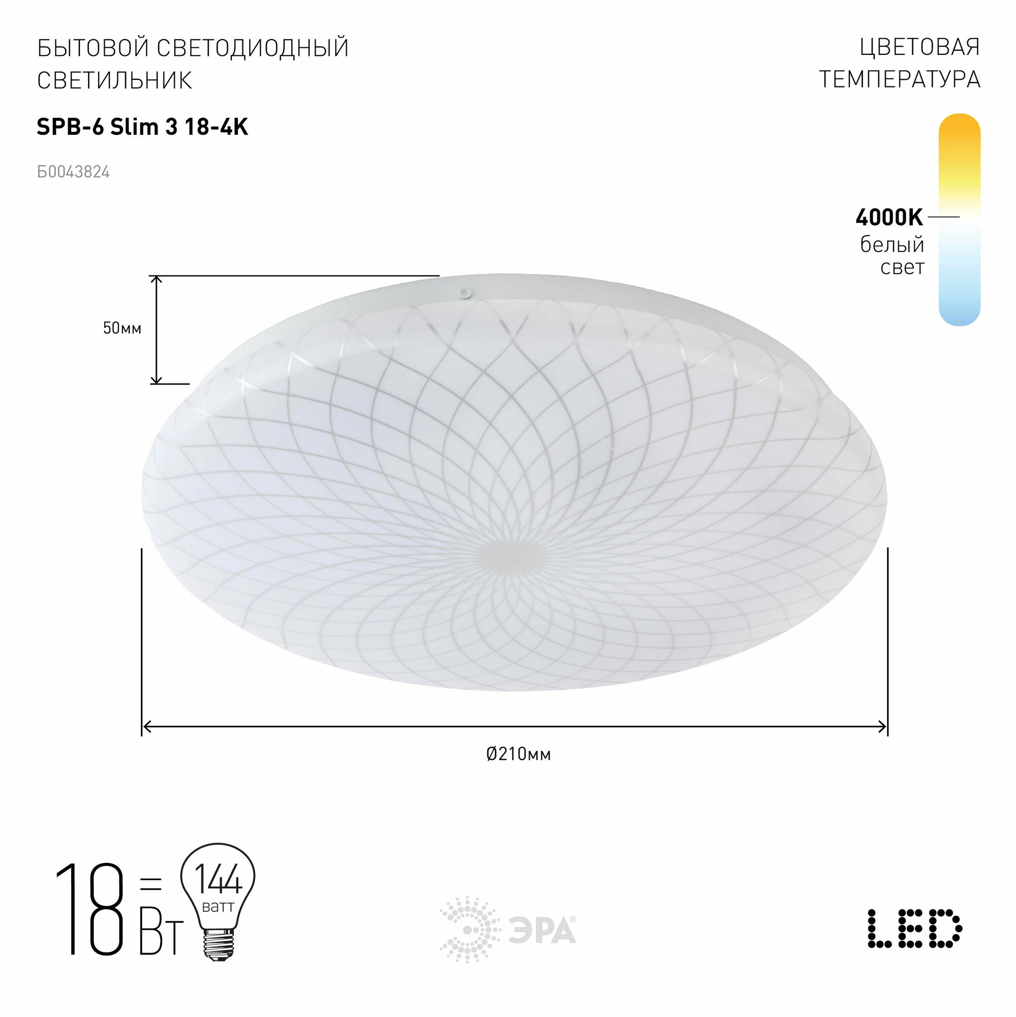 ЭРА SPB-6 "Slim 3" 18-4K Бытовые свет Светодиодный светильник 18Вт 4000K
