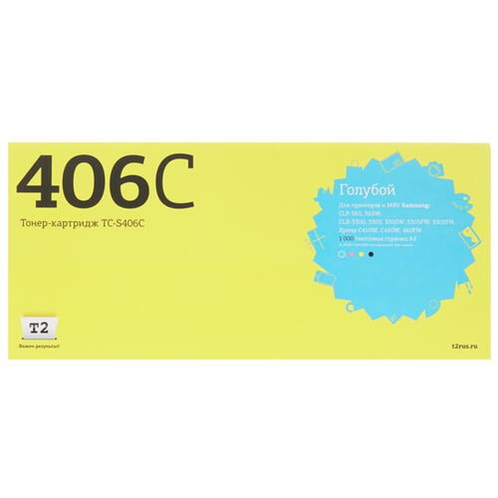 T2 Clt-c406s Картридж T2 (tc-s406c) для Samsung CLP-365/CLX-3300/3305/Xpress C410 (1000 стр.) голубо