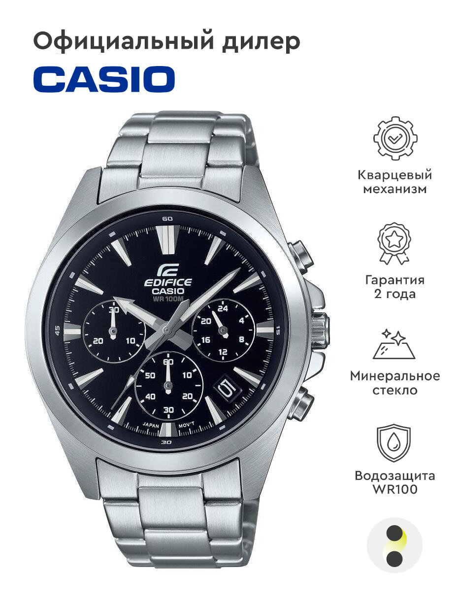 Японские кварцевые часы Casio Edifice EFV-630D-1A на стальном браслете, с водозащитой 10 бар и международной гарантией от производителя