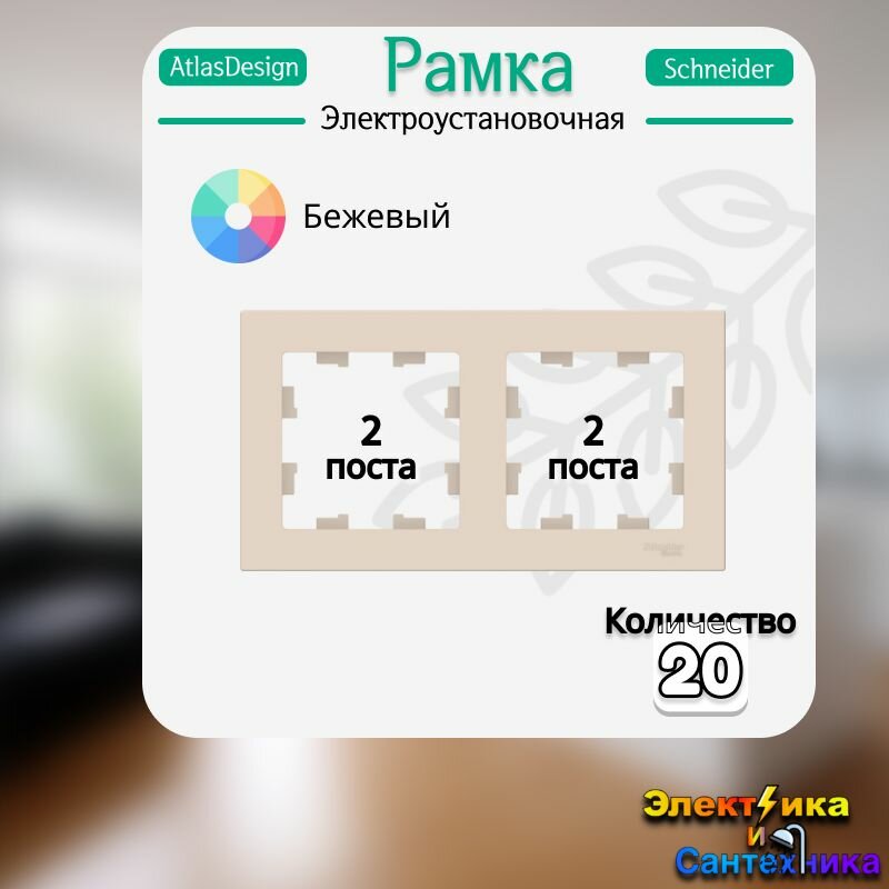 Рамка Schneider Electric AtlasDesign двухместная универсальная бежевая (комплект из 10 шт.)