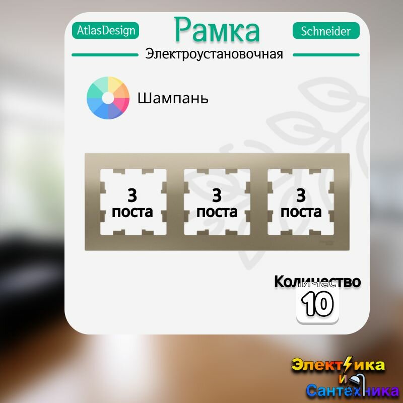 Купить Рамка 3-постовая для розеток и выключателей Шампань AtlasDesign (Атлас Дизайн) Schneider Electric ATN000503 10шт