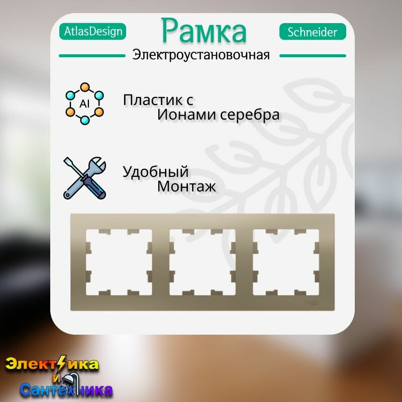 СохранитьРамка 3-постовая для розеток и выключателей Шампань AtlasDesign (Атлас Дизайн) Schneider Electric ATN000503 10шт интересное:
