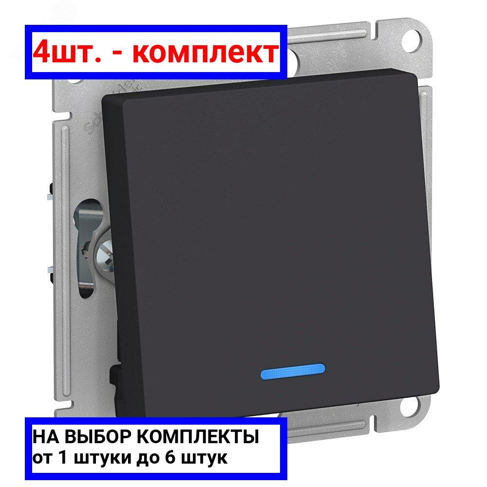 Переключатель/выключатель 4 шт. проходной AtlasDesign 10А одноклавишный с подсветкой Schneider Electric/Systeme Electric механизм скрытая установка карбон ATN001063