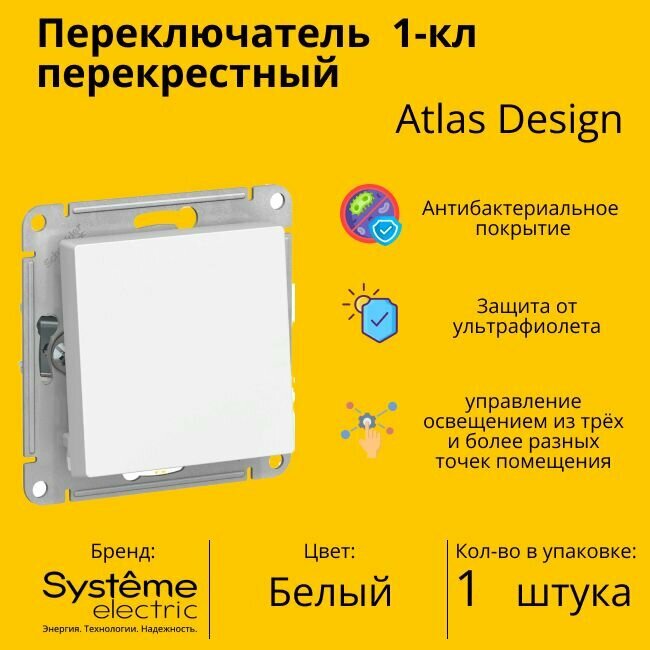 Купить Переключатель перекрестный Systeme Electric Atlas Design 1-клавишный, 10А, 10 AX, Белый - 1 шт.