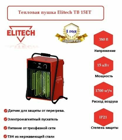 Elitech Пушка тепловая ТВ 15ЕТ интересное: