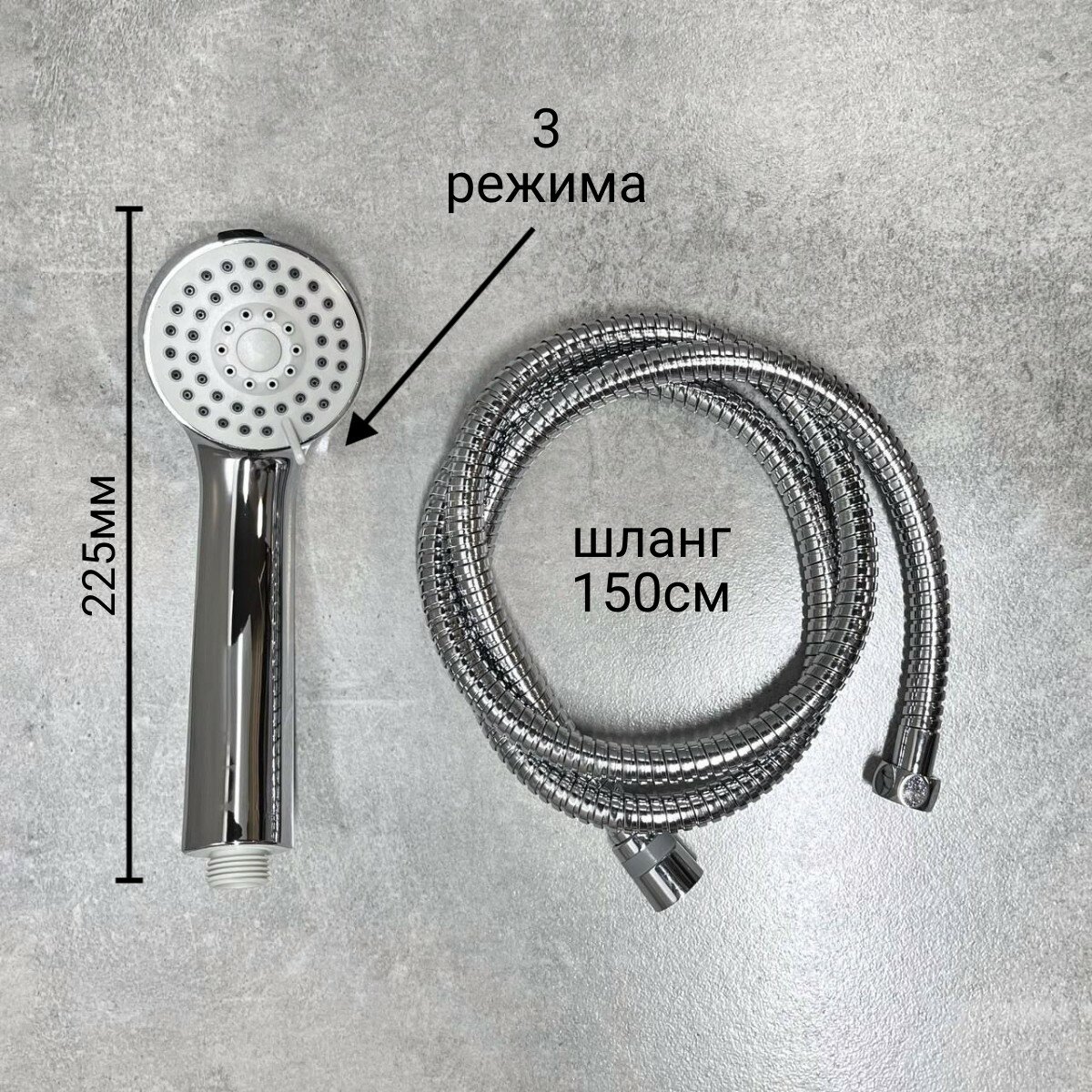 | Комплектация | душевой шланг 150 см, душевая лейка, держатель лейки, комплект отражателей, комплект эксцентриков |