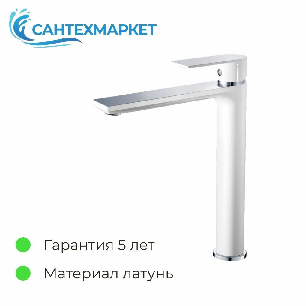 Высокий смеситель для раковины (латунь) белый/хром Haiba HB11505-8