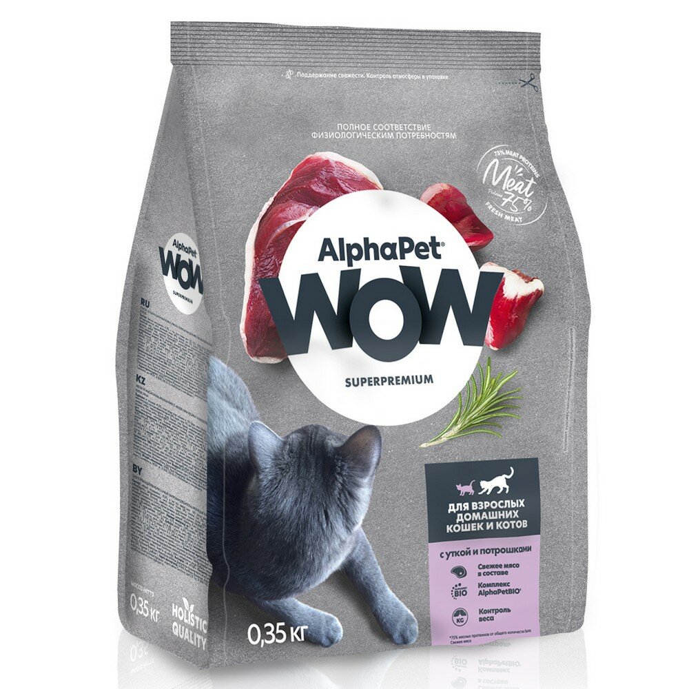 ALPHAPET WOW SUPERPREMIUM сухой корм для взрослых домашних кошек и котов с уткой и потрошками 350 гр