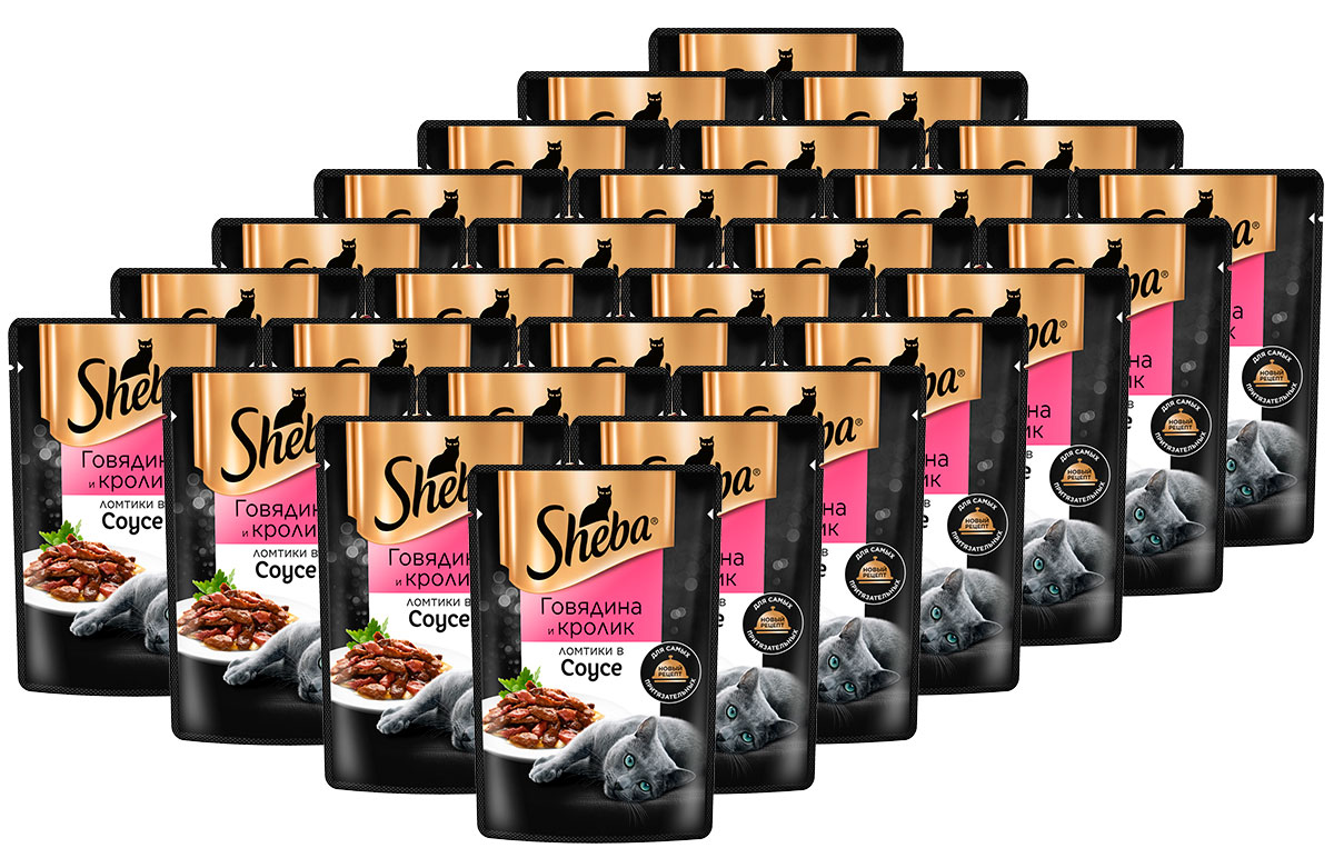 Sheba Ломтики в соусе пауч для кошек Говядина и кролик, 75 г. упаковка 28 шт