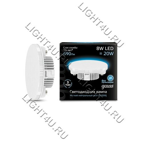 Лампа Gauss GX53 8W 690lm 4100K LED 1/10/100