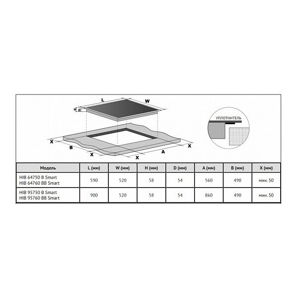Варочная панель электрическая индукционная встраиваемая Кёртинг HIB 64750 B Smart черный стеклокерамика 60x590х520мм 4 конфорки сенсорное управление