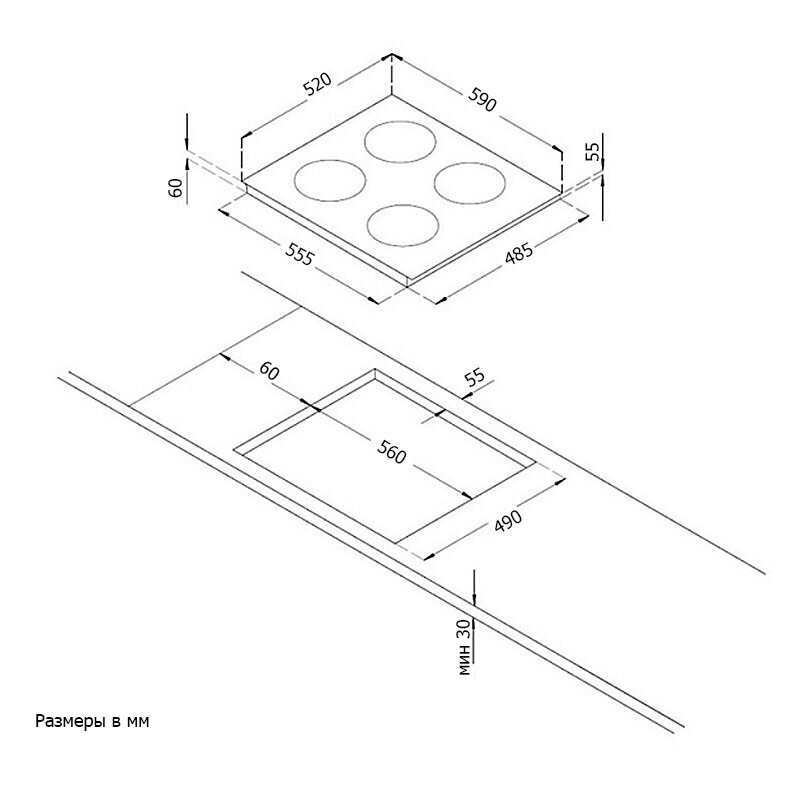 | Ширина для встраивания | 56 см |