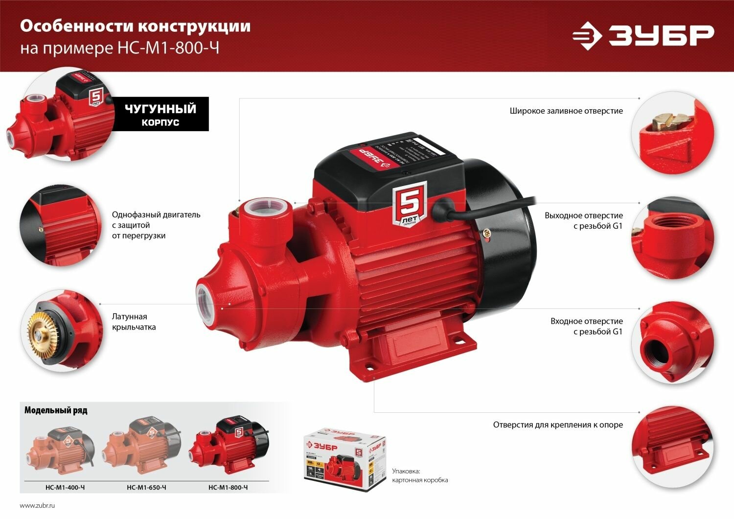 Садовый самовсасывающий насос Зубр мастер М1 НС-М1-650-Ч