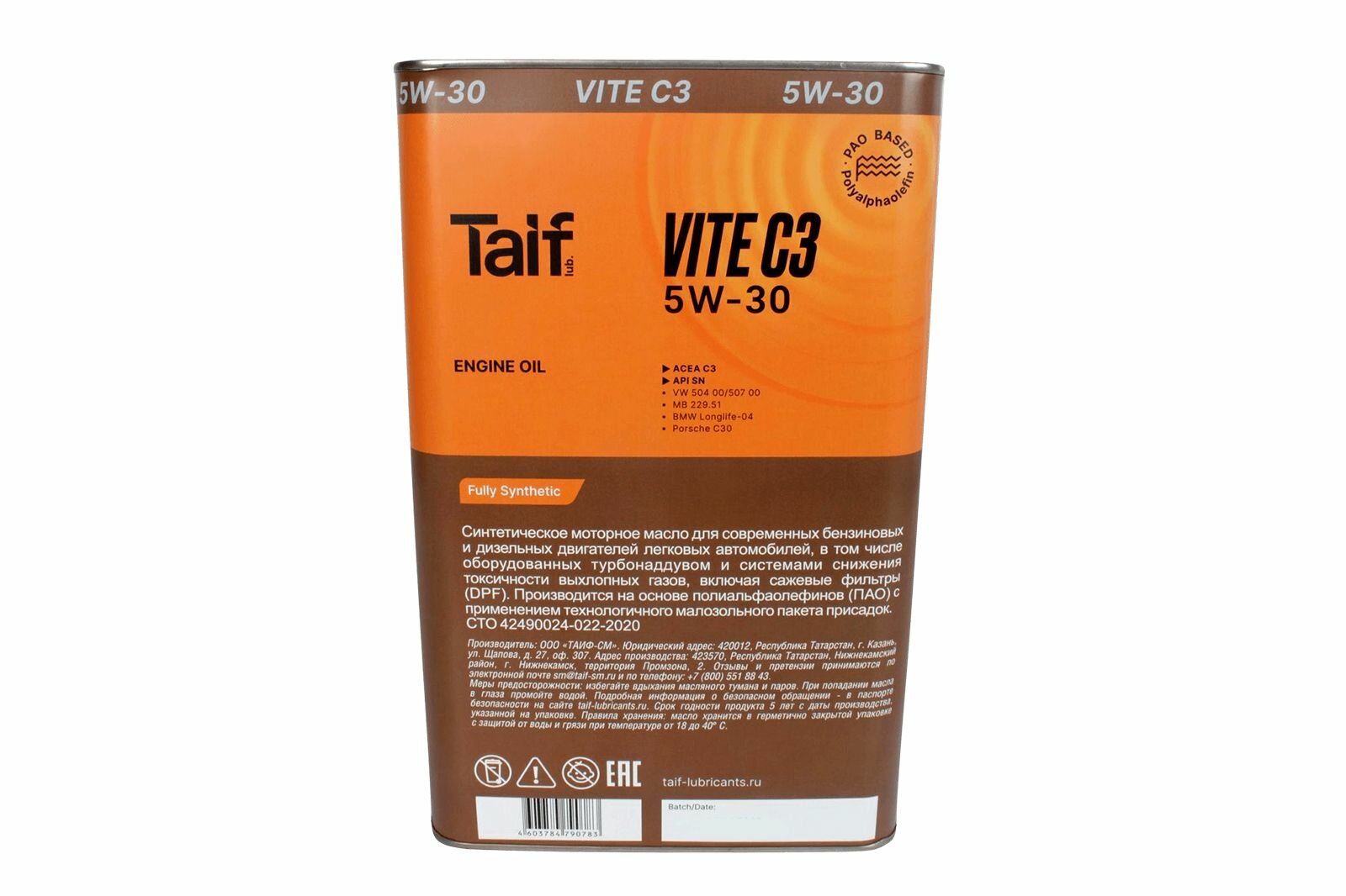 Синтетическое моторное масло TAIF VITE C3 5W-30, 4 л, 4 кг, 1 шт