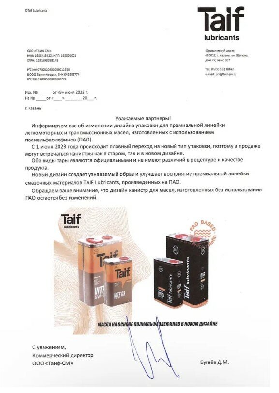 СохранитьМоторное масло TAIF VITE C3 5W-30, 4л интересное: