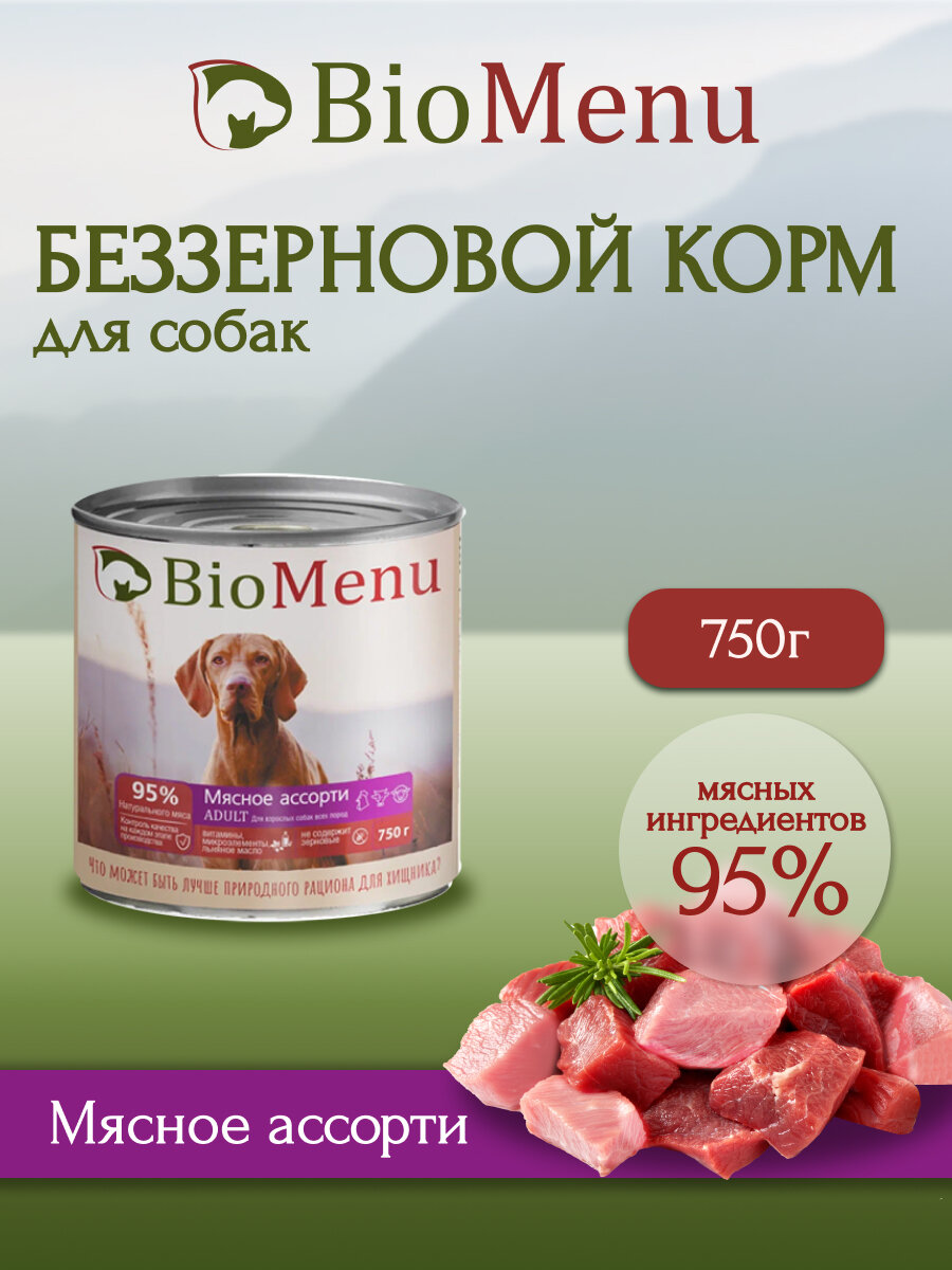 Сохранить#(4+1)BioMenu Консервы д/собак тушеные Мясное ассорти 750гр интересное: