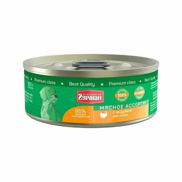 Четвероногий Гурман Консервы для собак "Мясное ассорти" с индейкой, 100г 0.1 кг