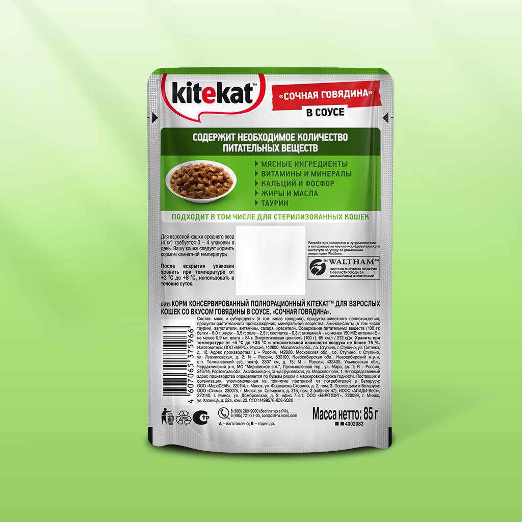 85Г китекет пауч говяд В соусе - KITEKAT