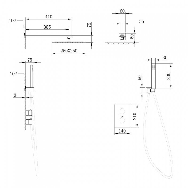 Душевой комплект 250 мм Abber Weiss Insel AF8051