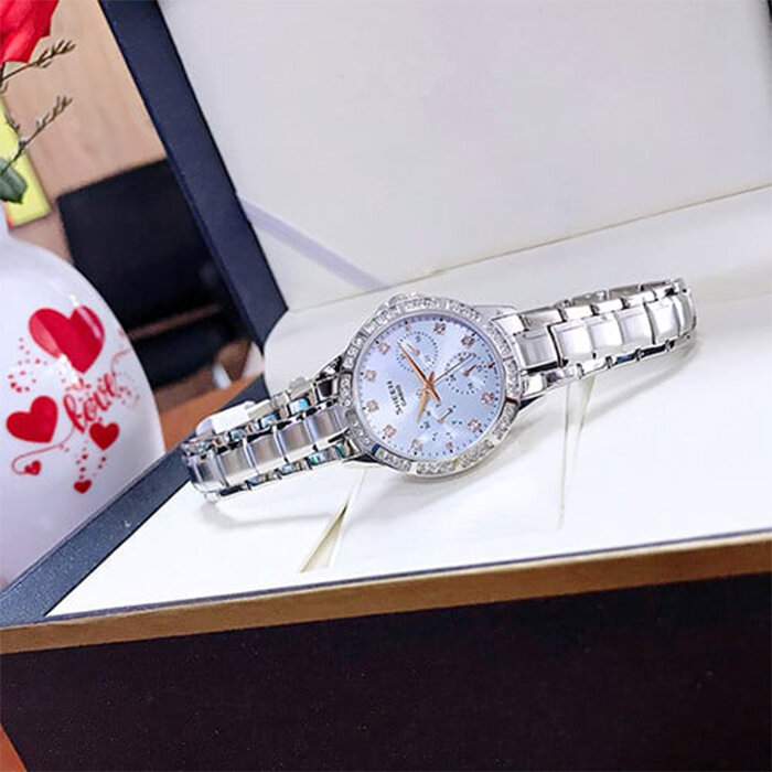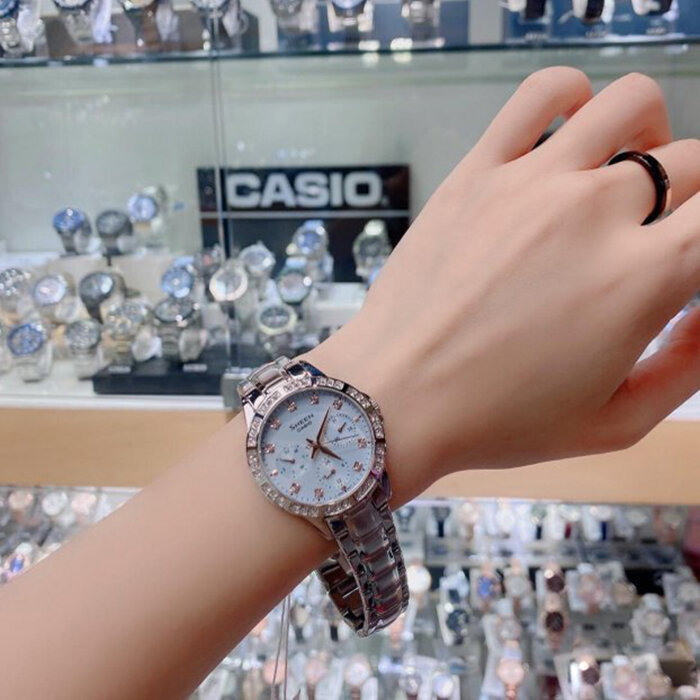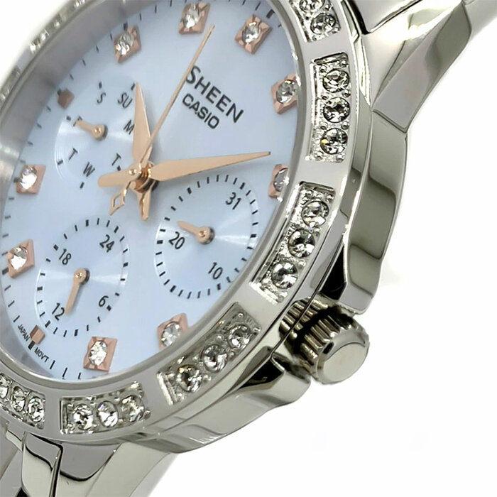 Наручные часы CASIO Sheen SHE-3517D-2A, женские, сапфировое стекло, WR50, серебристый, голубой