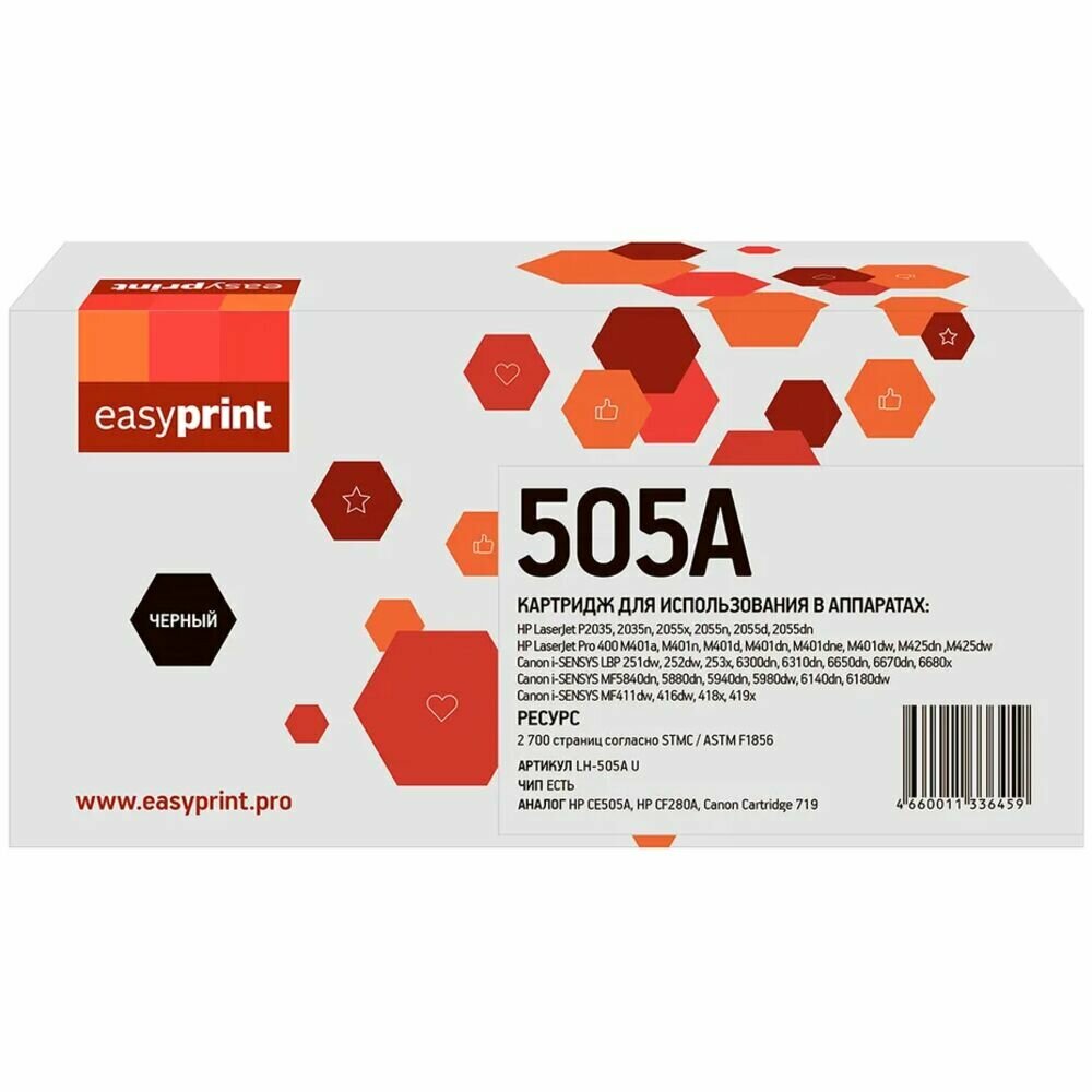 Картридж EasyPrint LH-505A U, черный, 2700 страниц, совместимый для LJ P2035/2055/M401/M425, LBP6300/MF5840/5940