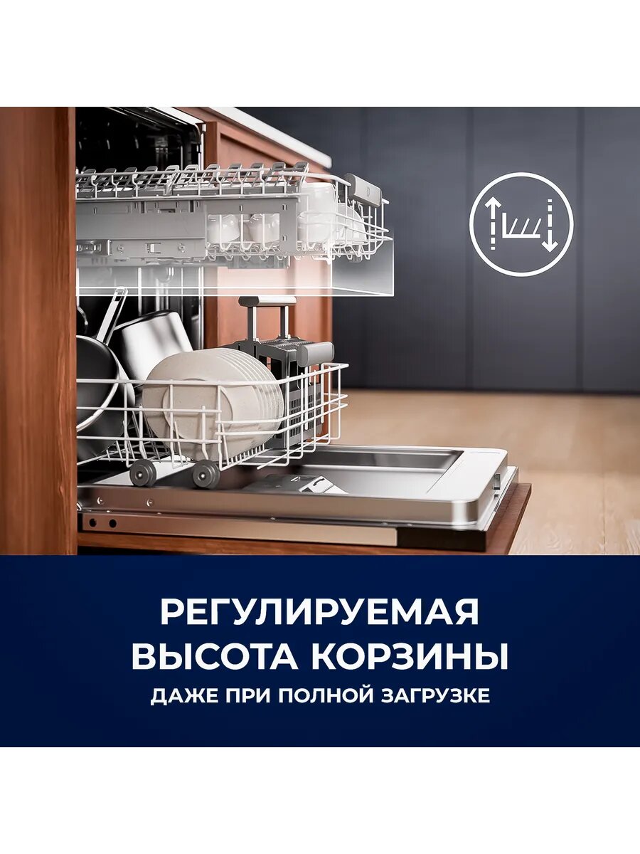 | Особенности конструкции | автоматическое открывание дверцы по завершении цикла / дисплей / использование средств 3 в 1 / регулируемая по высоте корзина для посуды / сенсор чистоты воды / таймер отсрочки |
