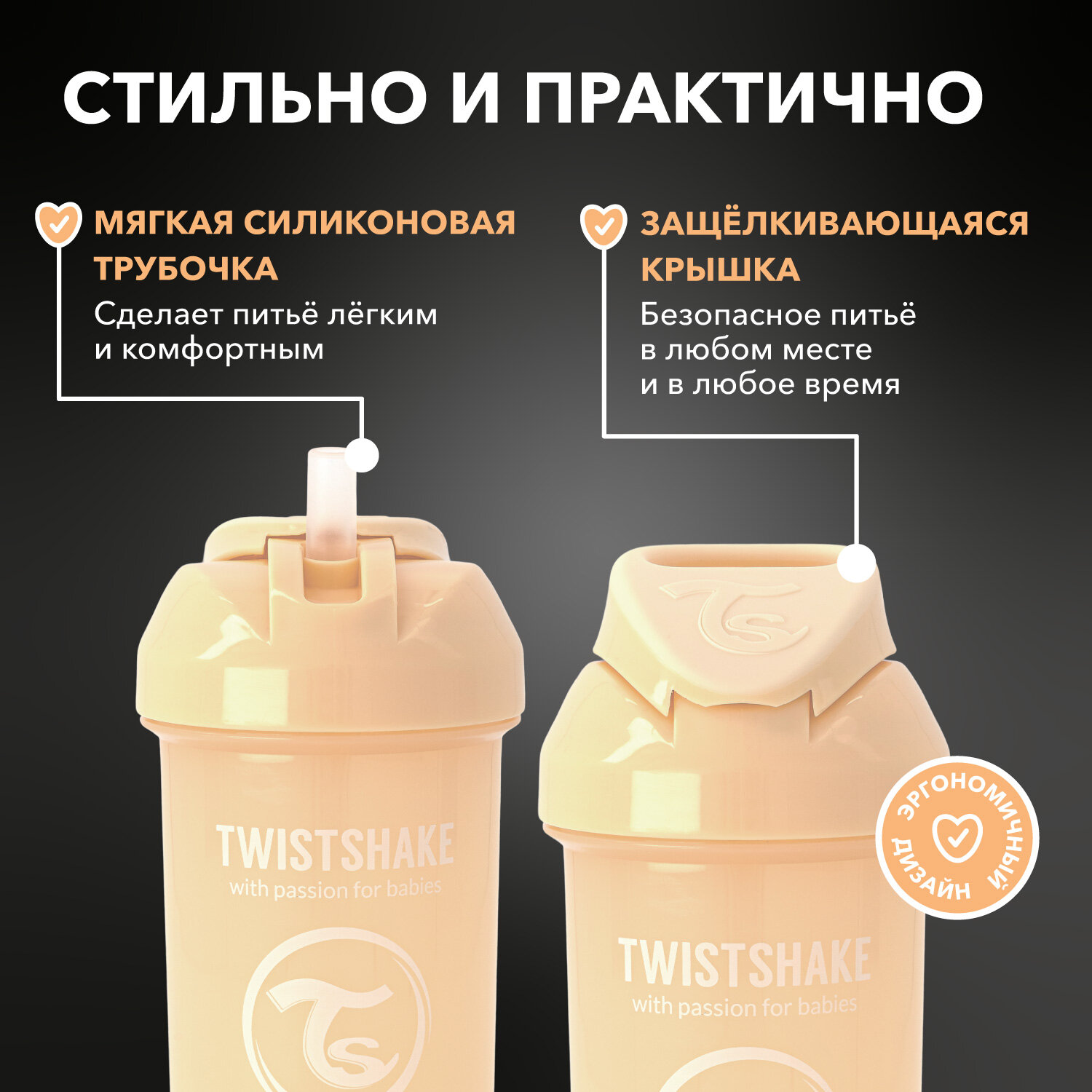 СохранитьДетский поильник-непроливайка с трубочкой Twistshake Straw Cup, 360 мл, от 6 мес. Карамельный бежевый интересное: