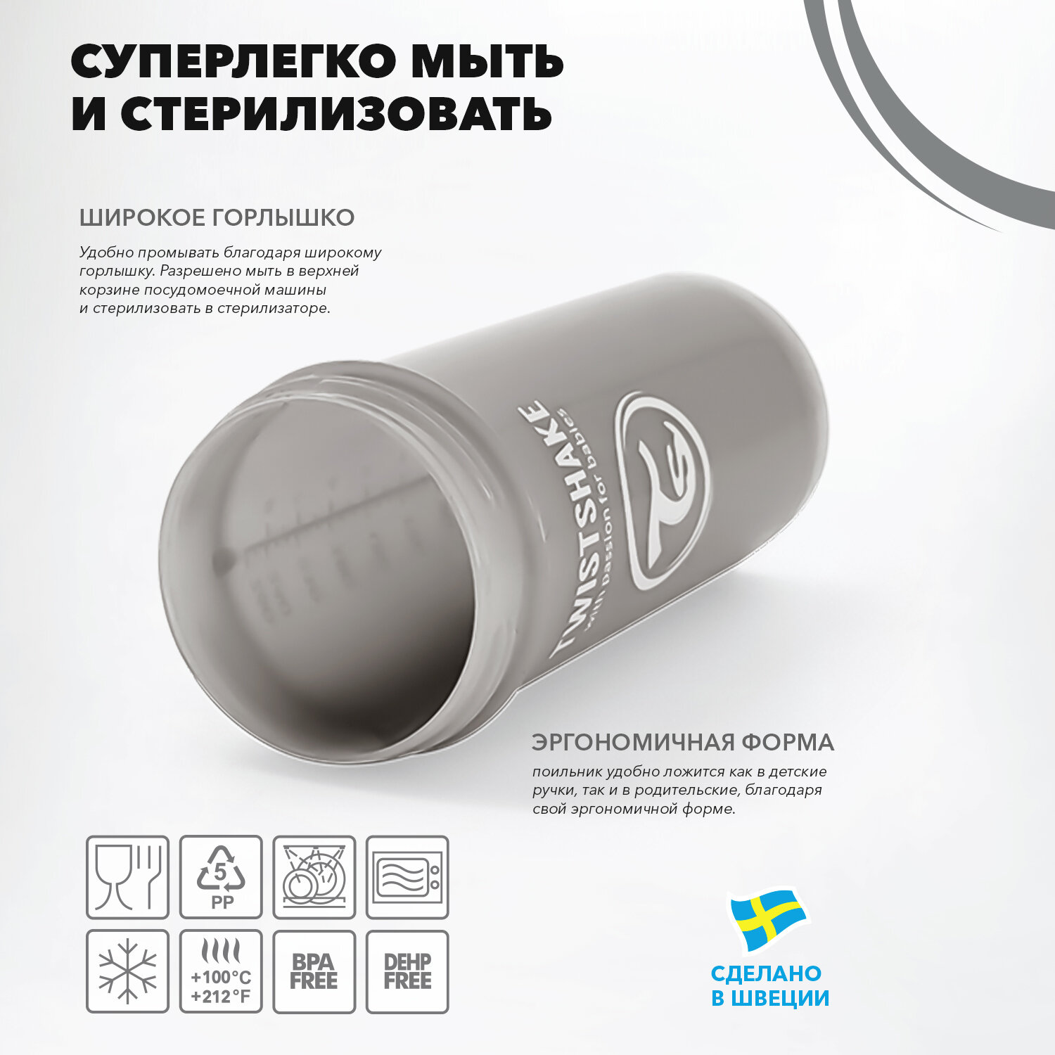 Поильник непроливайка детский с трубочкой 360мл, от 6+мес.Twistshake, цвет: серый (Pastel Grey)